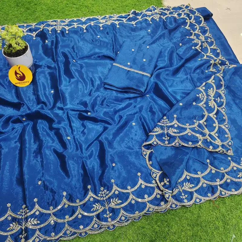 Chinon Cut Work Saree With Work Blouse – YEAR12