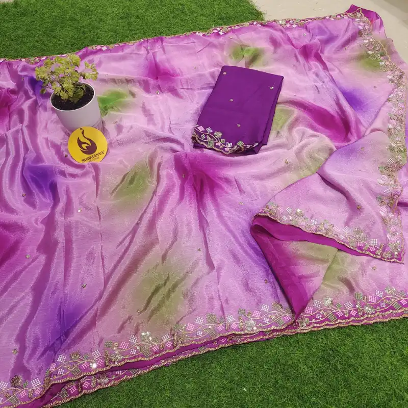 Chinon Cut Work Saree With Work Blouse